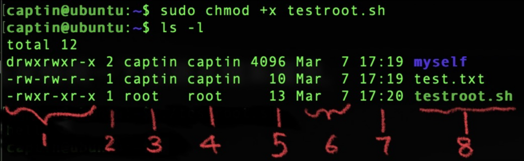 - 第1位, 如果是 d 代表這個是目錄, – 代表這個是檔案
